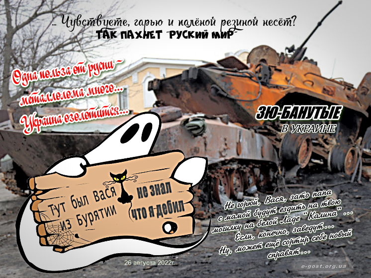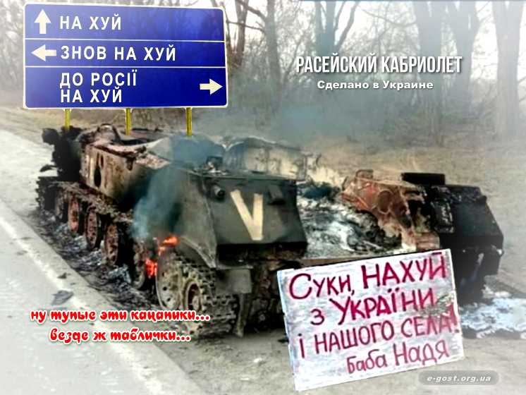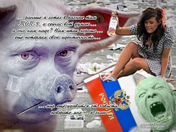 1. Галерея будет пополняться до тех пор пока Украинский Флаг не будет установлен на развалинах кремля! 2. Все картинки в этой галерее носят, как говорил "95 квартал", чисто оскорбительный, открыто издевательский и неприкрыто ненавидящий всю русню, характер. Не поймите нас по-другому... 3. Будем признательны всем IT-волонтёрам (блоггерам, smm- и рекламным специалистам) в "разбрасывании" этих картинок" по интернету, несмотря на п.2. Это наш фронт и наш вклад в победу Украины!