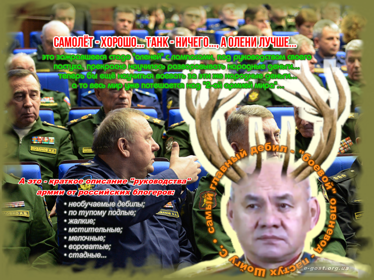 18.04.2022: В этом году исполняется ровно 10 лет, как тувинский "войсковой" оленевод и казнокрад играет роль министра обороны в путинском спектакле "о великой расее" в большом путинском театре Драмы... и Комедии. Правда, до безобразия паскудно... Станиславский десять раз бы умер ещё до того, как сказать этому "артисту": "Ну не верю!". После побега рашистской армии из Харькова, а потом из Херсона только удивляешься, насколько Станиславский был талантлив...