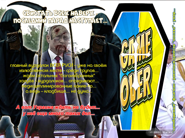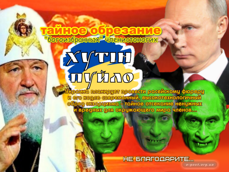1. Галерея будет пополняться до тех пор пока Украинский Флаг не будет установлен на развалинах кремля! 2. Все картинки в этой галерее носят, как говорил "95 квартал", чисто оскорбительный, открыто издевательский и неприкрыто ненавидящий всю русню, характер. Не поймите нас по-другому... 3. Будем признательны всем IT-волонтёрам (блоггерам, smm- и рекламным специалистам) в "разбрасывании" этих картинок" по интернету, несмотря на п.2. Это наш фронт и наш вклад в победу Украины!