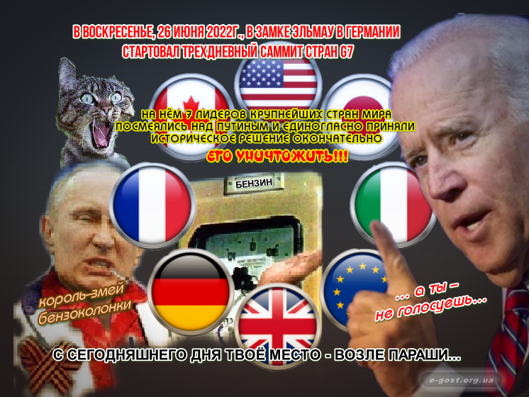 С 26.06.22г. "король бензоколонки" занял своё "почетное" место в мире - возле параши (G7)