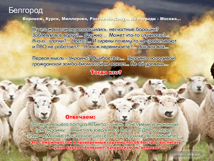 Москали знайте: Белгород, Курск, Ростов и Воронеж обстреливала не Украина, а ваши же вурдалаки!