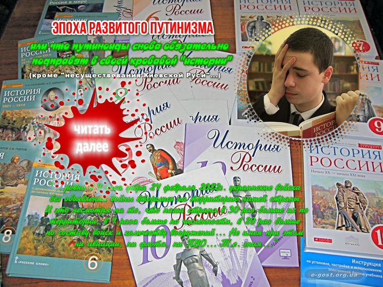В связи с полностью проваленной "спецоперацией", русне придётся в очередной раз заново редактировать свою историю, начиная со школьных учебников. Несуществование "Киевской Руси" в новых школьных учебниках под редакцией путина, не считаем.