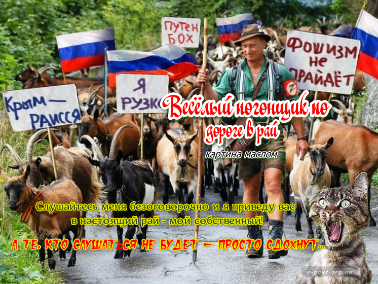 Путін: - В Україні з нами воюють не тільки НАТО, голуби та комарі, а також місцева свійська худоба, яка в полях залишає після себе протипіхотні міни сповільненої дії...