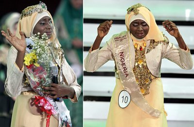 В Индонезии состоялся альтернативный конкурс "Мисс мусульманского мира". Девушки, которые принимали участие в мероприятии, выступали в закрытых нарядах. Жюри давало оценку их набожности, благочестию, а также уровню знания текстов Корана. Победила на нем представительница Нигерии - 21-летняя девушка по имени Обабийи Аиша Аджибола, которая не сдерживала слез.