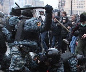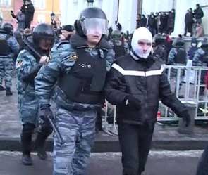 Милиция задержала нескольких футбольных болельщиков, в том числе тех, кто кидал в них бутылки. В драках, устроенных в футбольными болельщиками на Манежной площади в центре Москвы, пострадало не менее восьми человек. В ходе массовых беспорядков, в которых приняли участие больше тысячи футбольных болельщиков, также был избит оператор информационного агентства РИА Новости Рустам Бузанов.