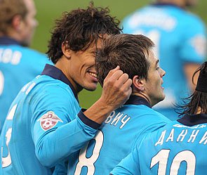 Футболисты питерского "Зенита" за два тура до конца чемпионата России по футболу стали чемпионами. Сделать это им удалось после победы над "Ростовом" в Санкт-Петербурге с убедительным счетом 5:0. Поскольку главный конкурент по турнирной таблице "Зенита" московский ЦСКА сегодня сыграл вничью с нальчинским "Спартаком" игроки питерской команды обеспечили себе досрочное звание чемпионов России по футболу.