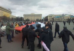 Пророссийские активисты держат в руках плакаты «Россия», «Янукович, спаси нас»! На памятнике Ленину закреплен большой плакат с надписью «Наша Родина - СССР». Активисты с георгиевскими лентами, уже трационно агрессивно настроены по отношению к украинским телеканалам - рассказать о цели собрания не хотят. Со сцены звучат призывы обратиться в облсовет, чтоб тот дал ...
